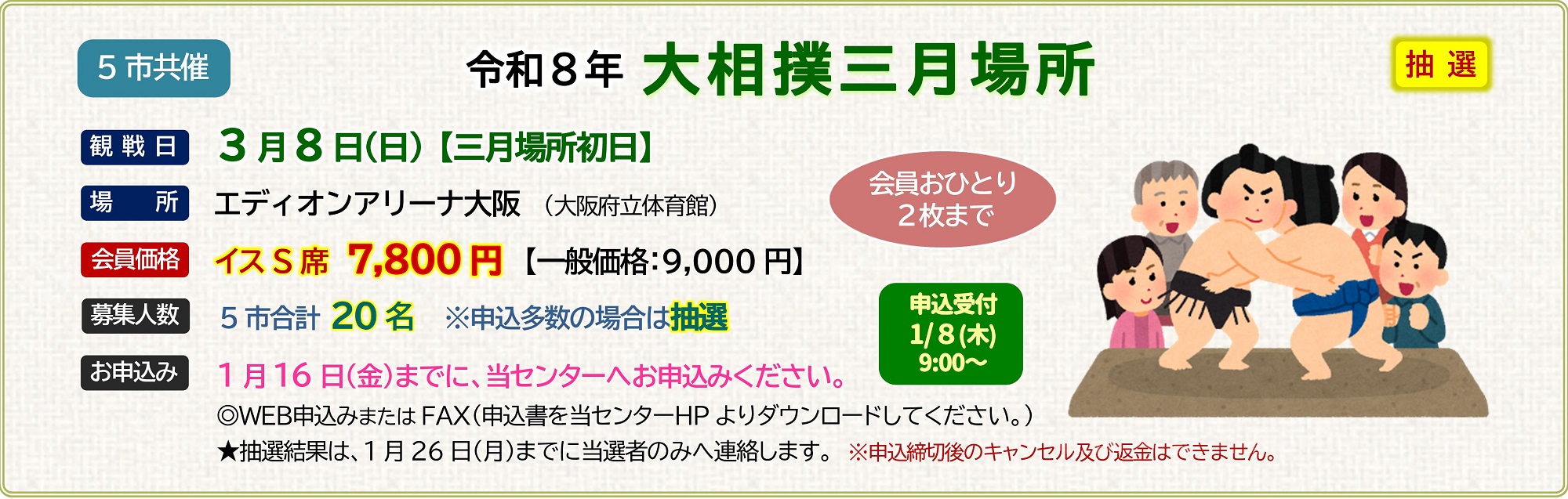 【抽選】令和8年 大相撲三月場所(5市共催)