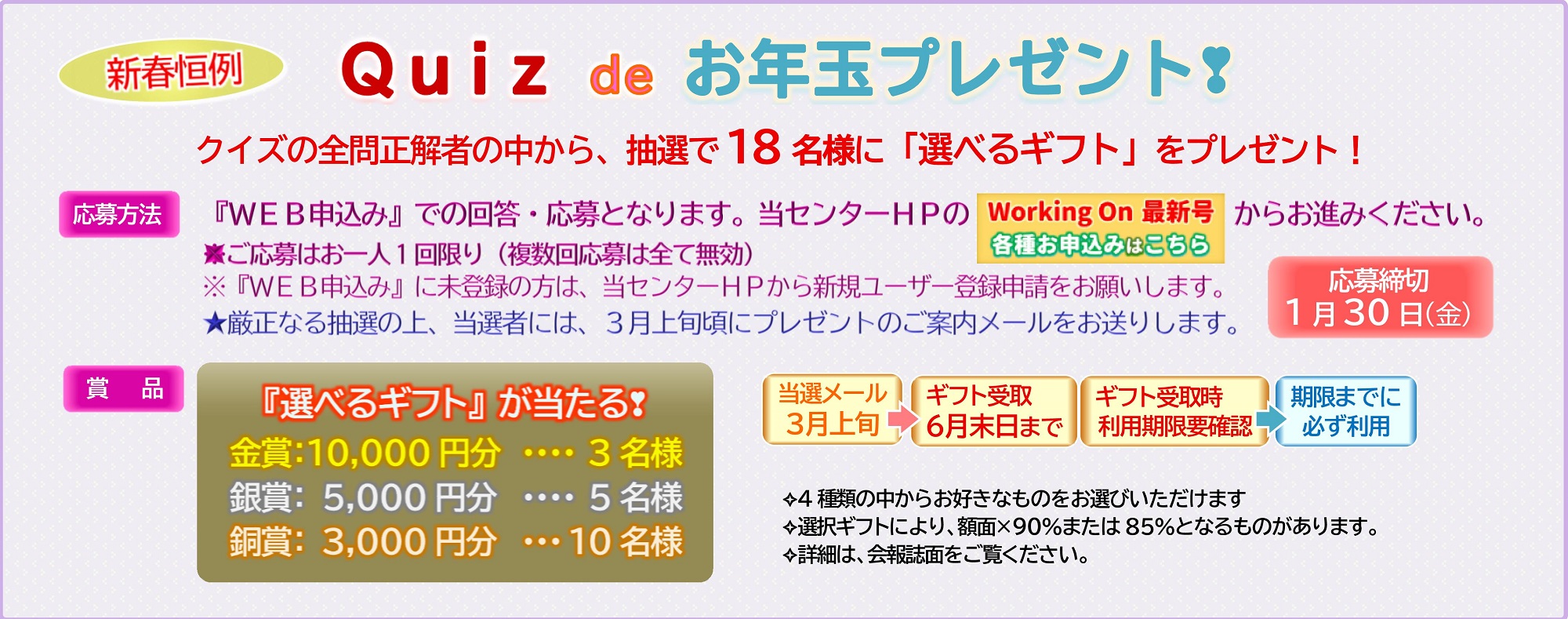 クイズの全問正解者の中から、抽選で18名様に「選べるギフト」をプレゼント!