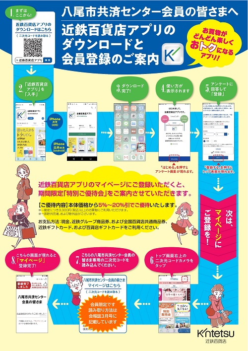 【当センター会員 新規特典】 近鉄百貨店の『特別ご優待会』をご利用いただけるようになりました☆ ⚠ご利用には、近鉄百貨店アプリのダウンロードとマイページ登録が必要です。 ★内容詳細↓↓ こちらからはマイページ登録はできません。